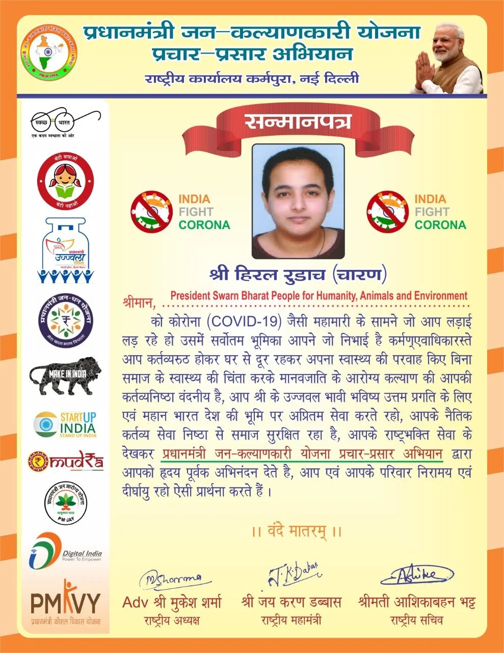 Hello, This is Hiral Rudach Charan.A Budding Environmentalist and an Avowed Philanthropist. President and Founder of Swarn Bharat People for Humanity, Animals and Environment. This video is my Contribution to the International Movement towards a Cleaner, Healtier Environment. Prime Minister Shri Narendra Modi Sir Campaign to Save Water,Environment and Ocean from Pollution.As emphasized by him in Mann ki Baat.